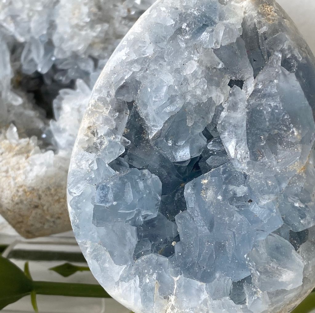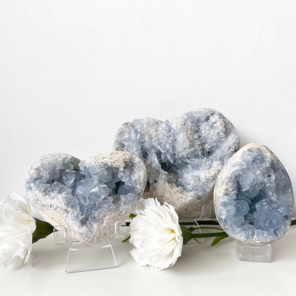 Celestite Geode Egg & Hearts